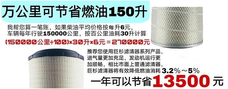 根據實際工況合理選擇空氣濾清器,長途型貨車使用高透氣量濾芯,是能達到節油效果的。